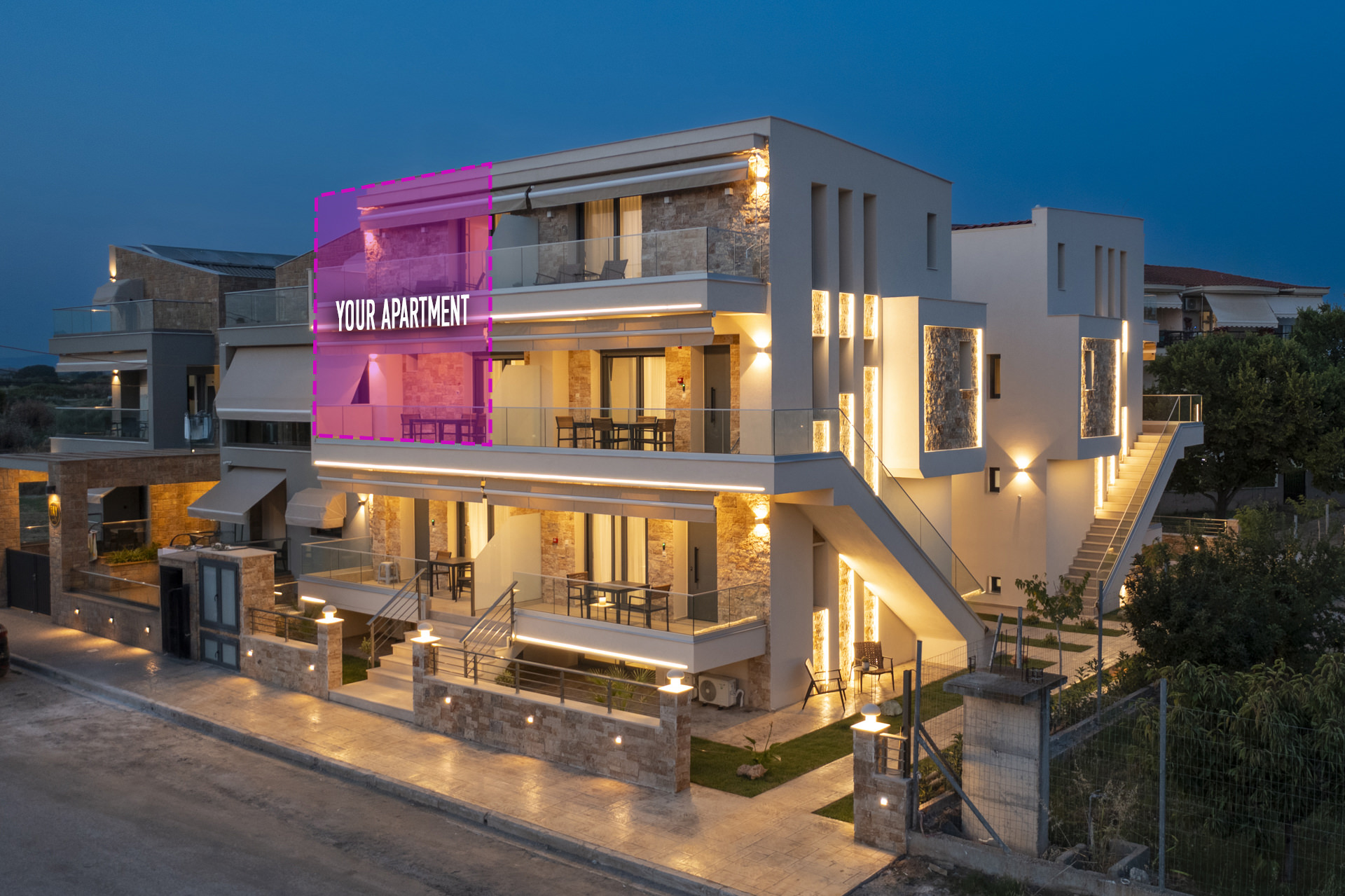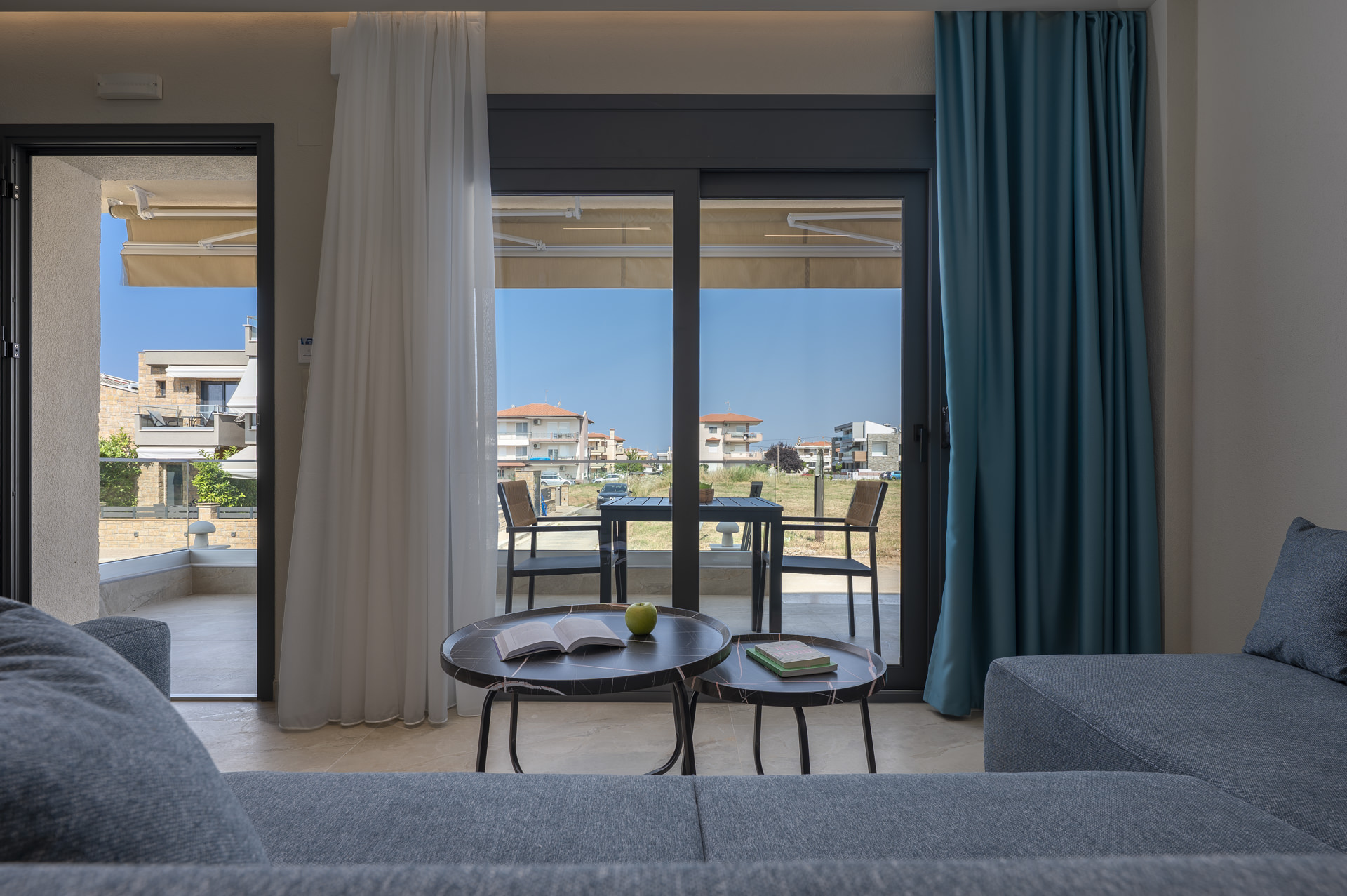 Step onto the terrace to enjoy glimpses of the Flogita, especially in the sunset hours. Whether you’re savoring breakfast al fresco or unwinding with an evening drink, the open-air setting sets the mood. With high-speed Wi-Fi, onsite parking, and proximity to local tavernas, markets, and the beach, this apartment is the perfect base for your Chalkidiki getaway.