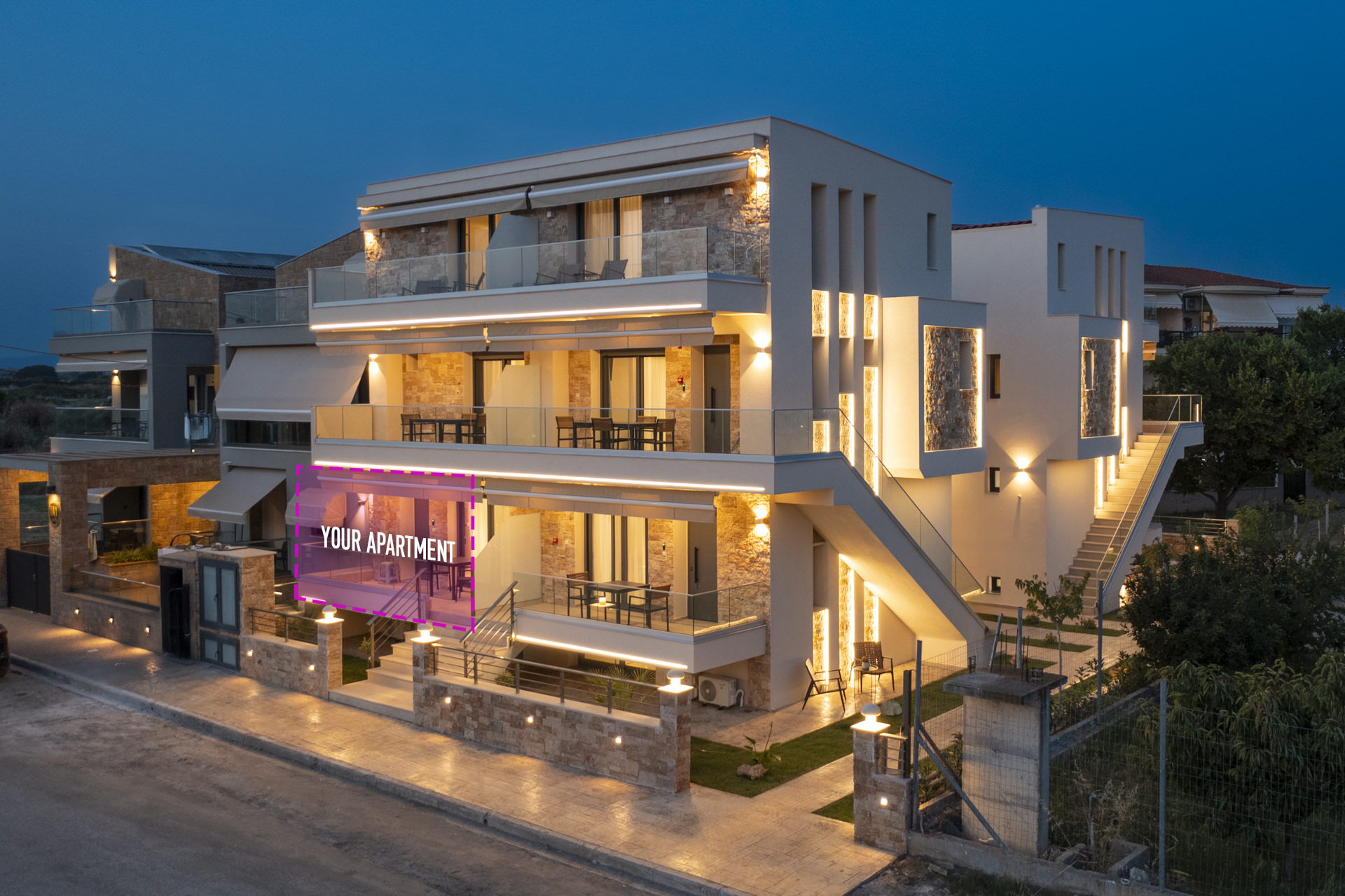 Slide open the patio doors to your sea-view terrace; sip your coffee overlooking the Aegean or unwind with an evening drink as the sun sets. With high-speed Wi-Fi, onsite parking, and easy access to local tavernas, markets and the shoreline, this apartment offers the perfect blend of comfort and convenience for your Chalkidiki escape.