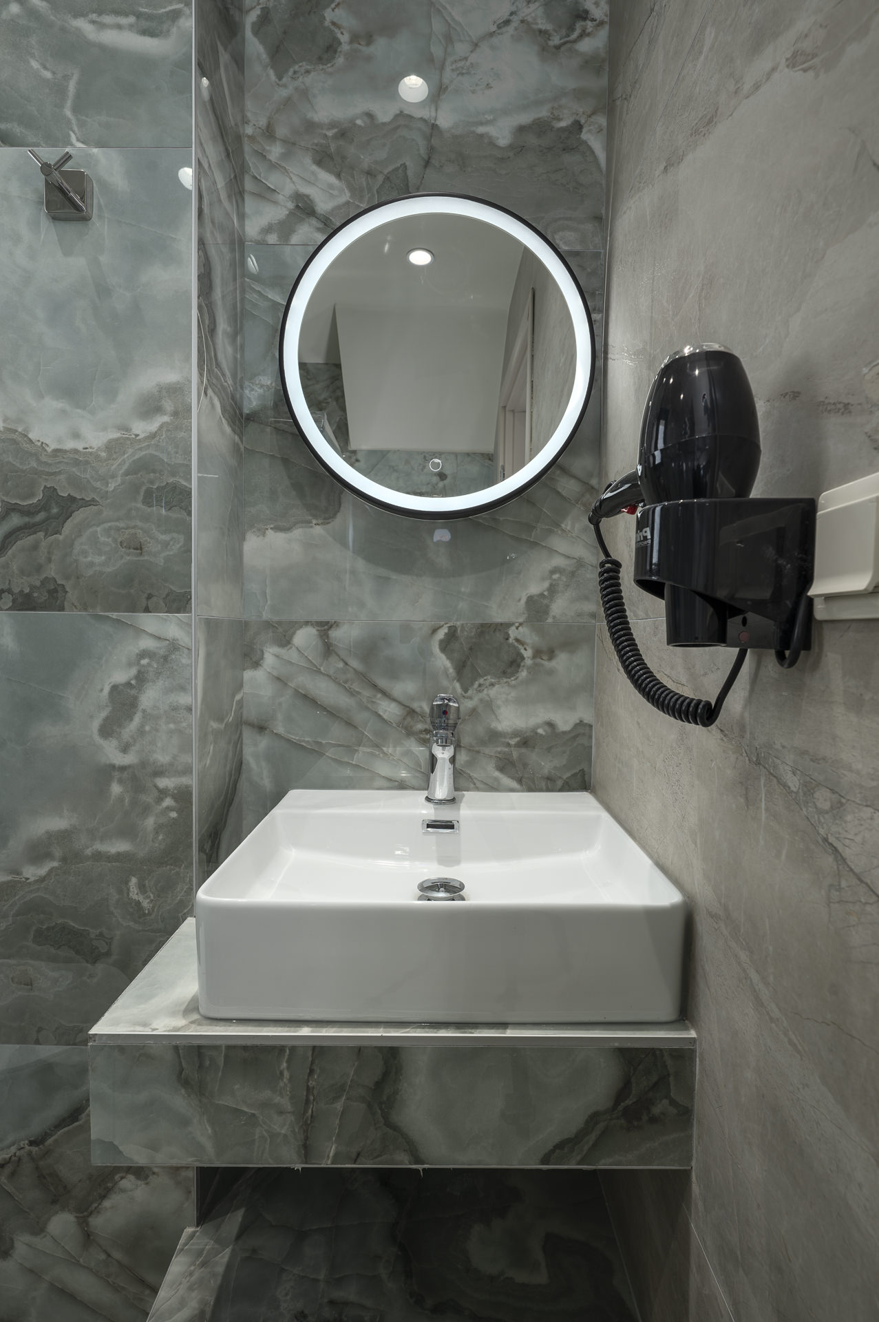 Ascend the open-tread staircase to two separate, soundproofed bedrooms—each fitted with cozy bedding and a flat-screen TV with cable channels. Two sleek bathrooms, both with walk-in showers and hairdryers, guarantee comfort and privacy for up to three guests.