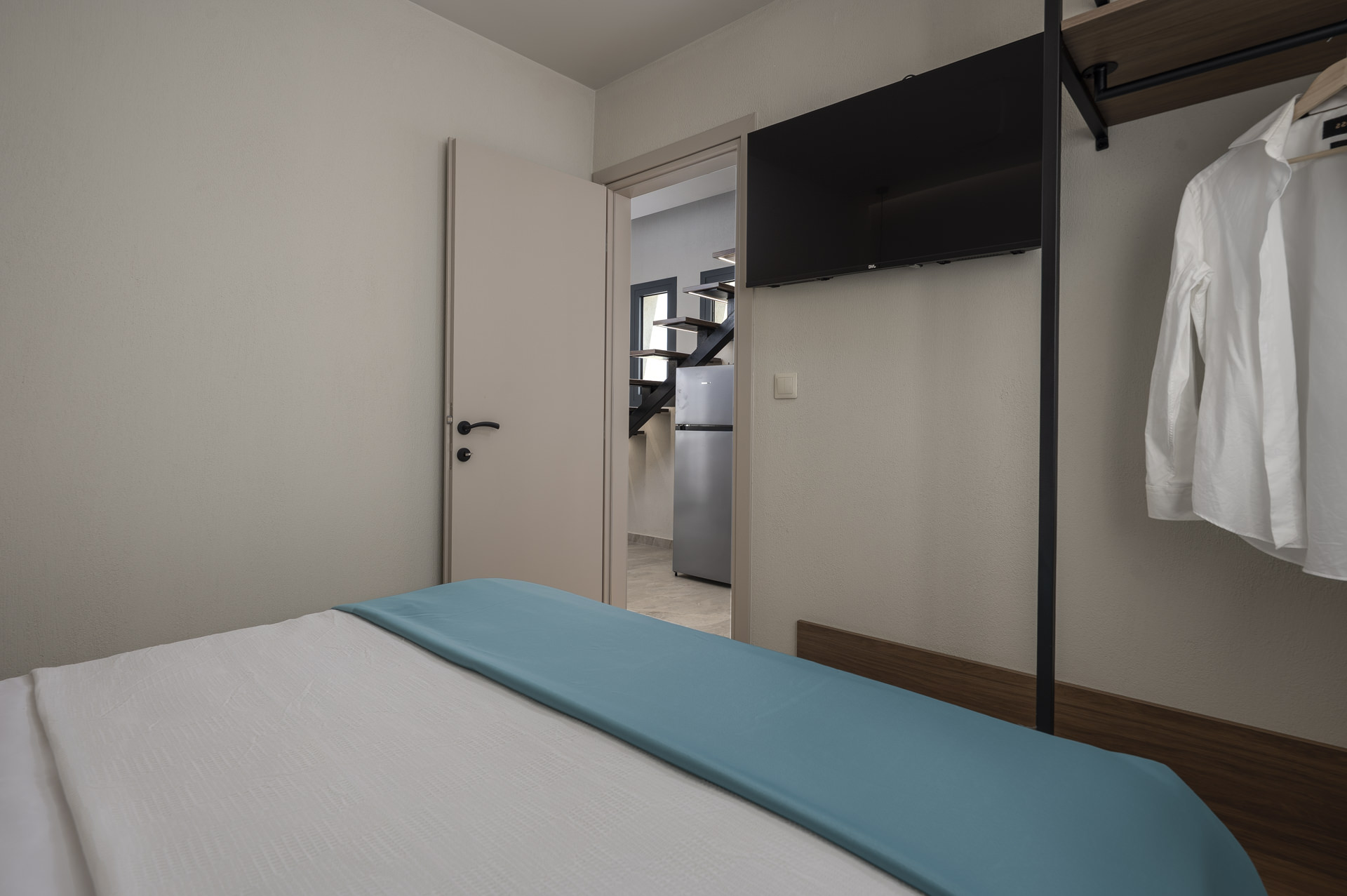 Discover Villa Vanesa’s Two-Level Maisonette-Style Two-Bedroom Full Sea-View Apartment, a private-entry retreat just moments from Nea Flogita beach. Step into the air-conditioned living room on the ground floor, where sliding doors open onto a spacious terrace with uninterrupted Aegean views. The well-equipped kitchenette—stovetop, refrigerator, kitchenware and tea & coffee maker—lets you prepare light meals at your leisure.