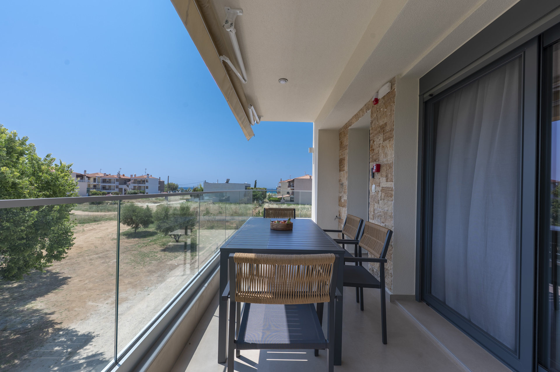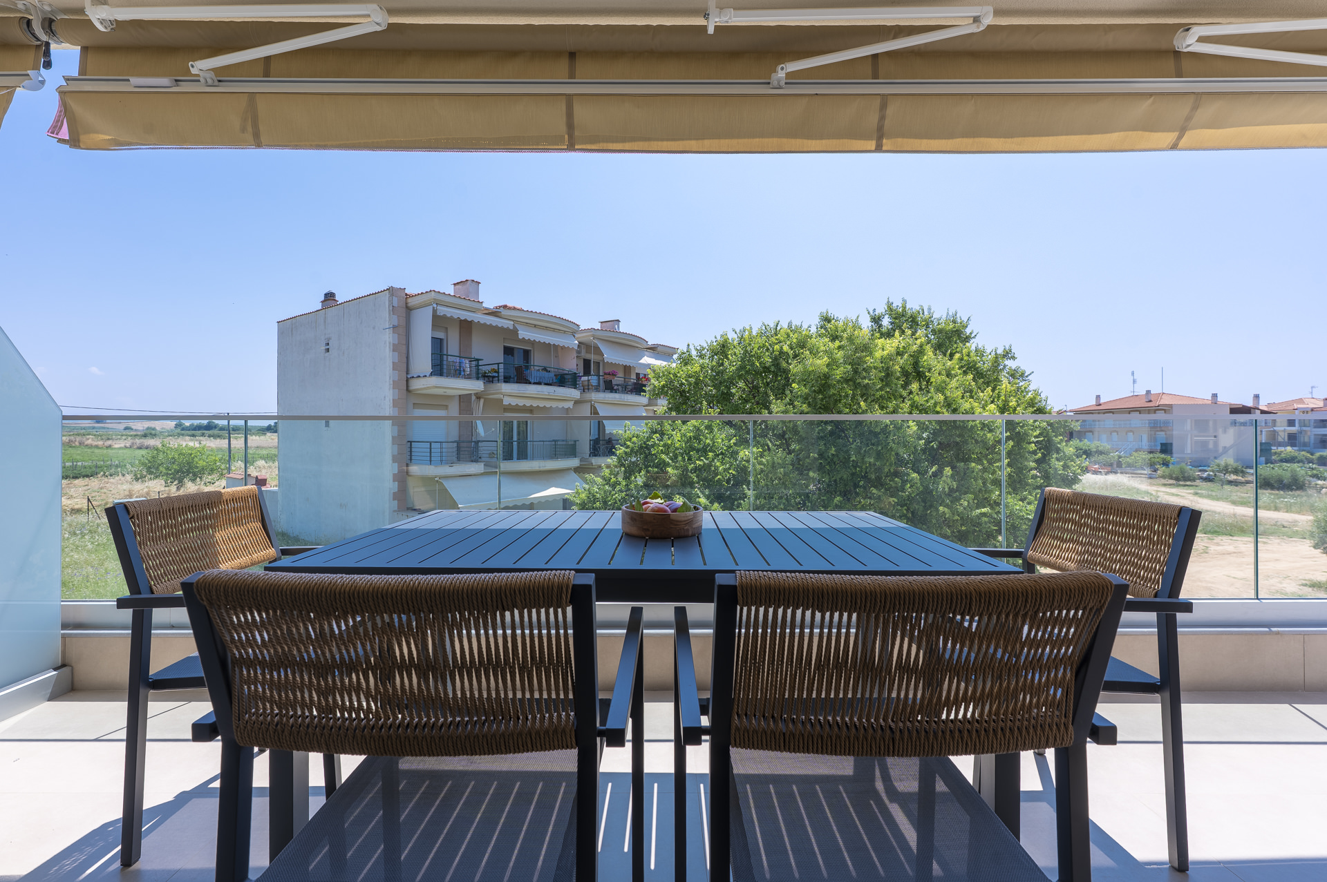 Whether you’re sipping morning espresso or enjoying an evening aperitif, the full sea-view terrace is the highlight of this maisonette. Fast Wi-Fi, onsite parking and a prime location near local tavernas, markets and the shore make this sea-view unit the perfect base for exploring Chalkidiki.